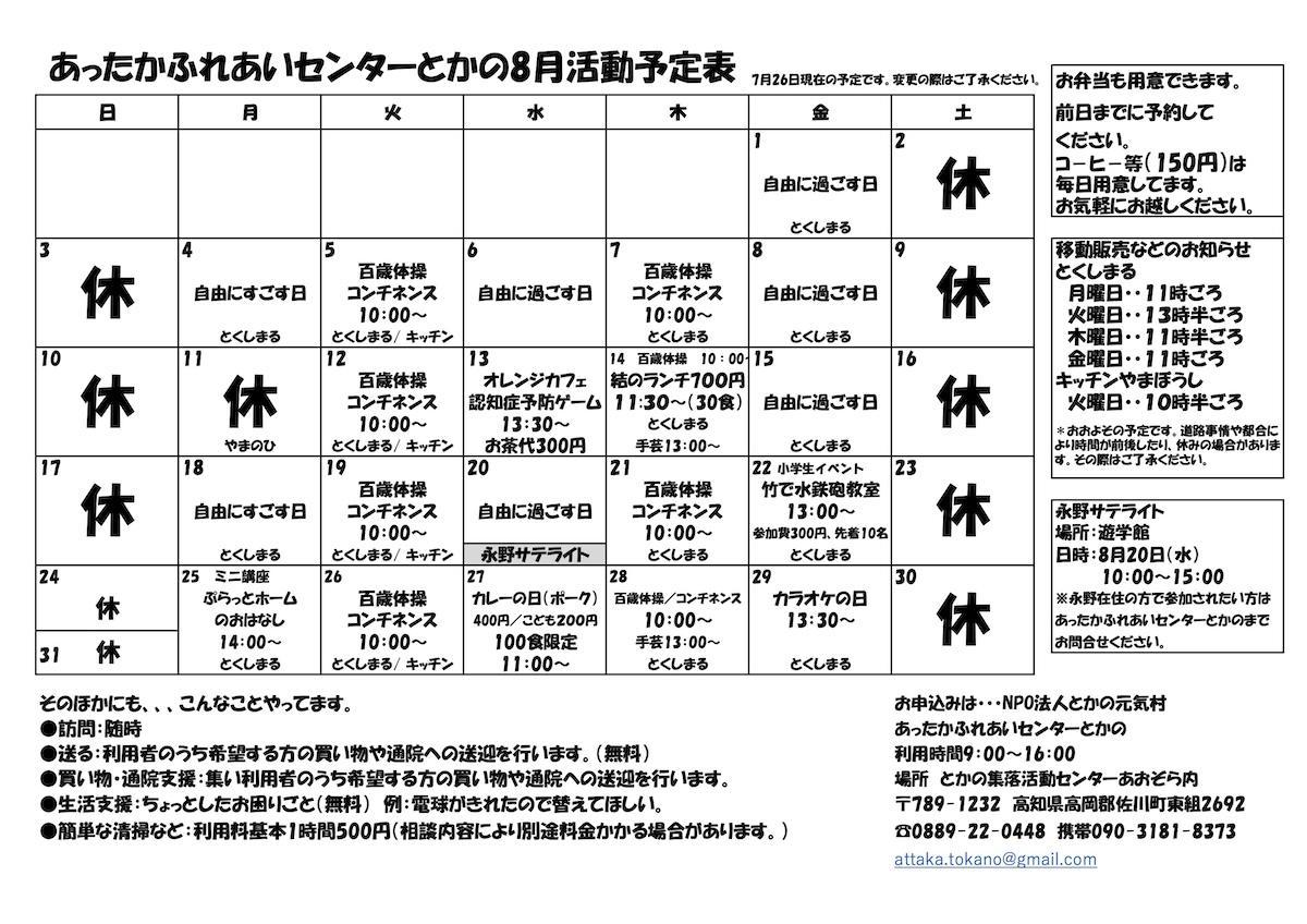 お申し込みはNPO法人 とかの元気村、またはあったかふれあいセンターとかのまで。