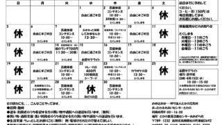 今月は祝日が多くなる為、お休みの日が多くなりますのでご確認をお願いいたします。