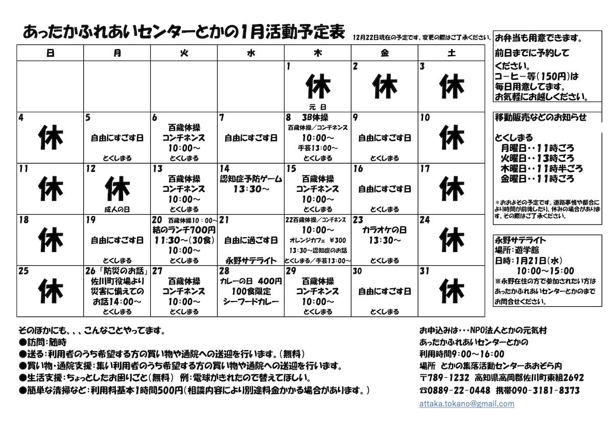 あったかふれあいセンターとかの2026年1月の予定表を掲載しました。